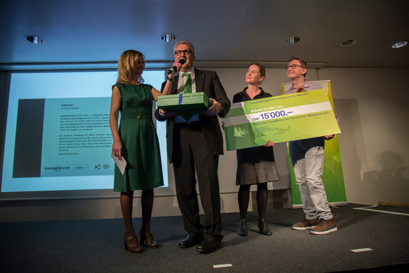 Konrad Stokar, Mitglied des Vereins BewegGrund (und übrigens auch Geschäftsleiter der Vereinigung Cerebral Schweiz) bedankt sich als Vertreter der Tanzformation für den Preis.