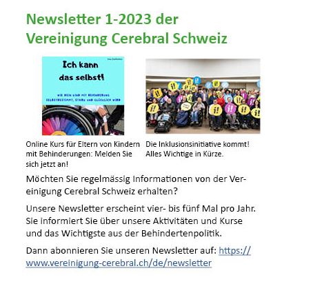 Newsletter 1/2023 der Vereinigung Cerebral Schweiz
