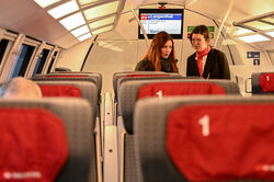 Auf dem Zug nach Lausanne waren wir Zugschefs und kontrollierten zwei Wagen. Kurz vor Lausanne machten wir eine Ansage. Der Zug war ein FV-Dosto Doppelstockzug. Danach hatten wir Mittagspause im SBB-Restaurant.