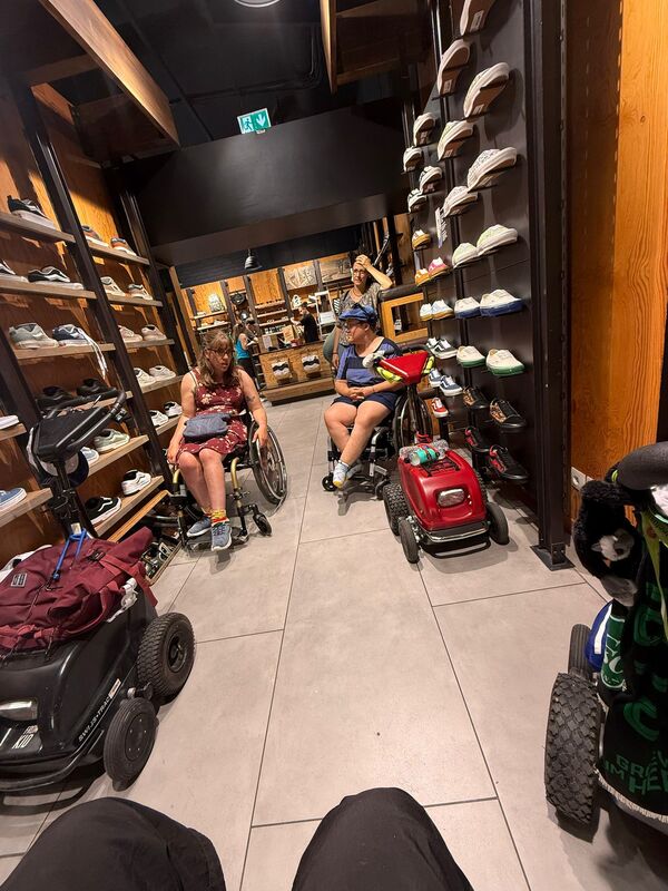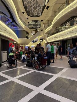 Ein grossartiger Shuttlebus brachte die Ausflügler mit drei Rollstühlen und drei Swisstracs in einer Fahrt in die Stadt. In der Shoppingstrasse kaufte die Gruppe fast einen Schuhladen leer. Ausgestattet mit modischen Sneakers ging es weiter zum alten Hafen. In einem der charmanten Bistros wurde der Durst und der Hunger gestillt. Es war ein grosses Glück, dass an der Haltestelle des Shuttlebuses wieder der gleiche barrierefreie Bus stand, der die Gruppe bereits morgens transportierte.