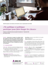 En savoir plusAGILE.CH organise une formation intitulée «Participer pour faire bouger les choses».